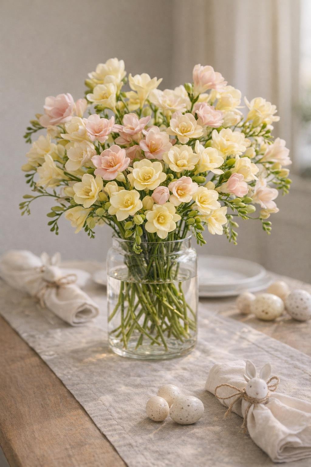 To make your freesias last longer, trim the stems at an angle and change the water every two days. You’ll enjoy their beautiful fragrance throughout the Easter weekend.