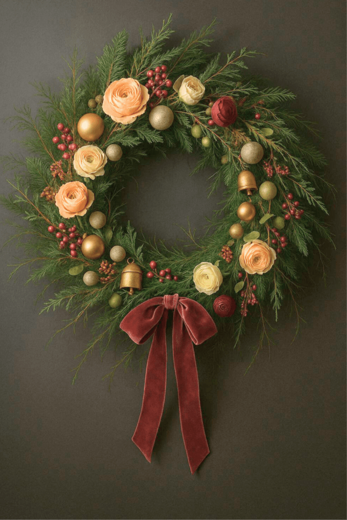 4. Elegant Rose & Velvet Christmas Wreath