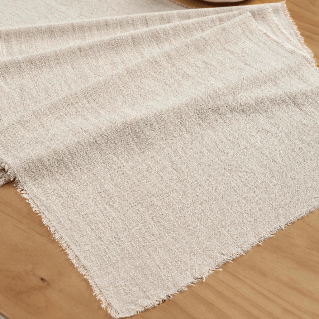- Neutral linen or gauze table runner
